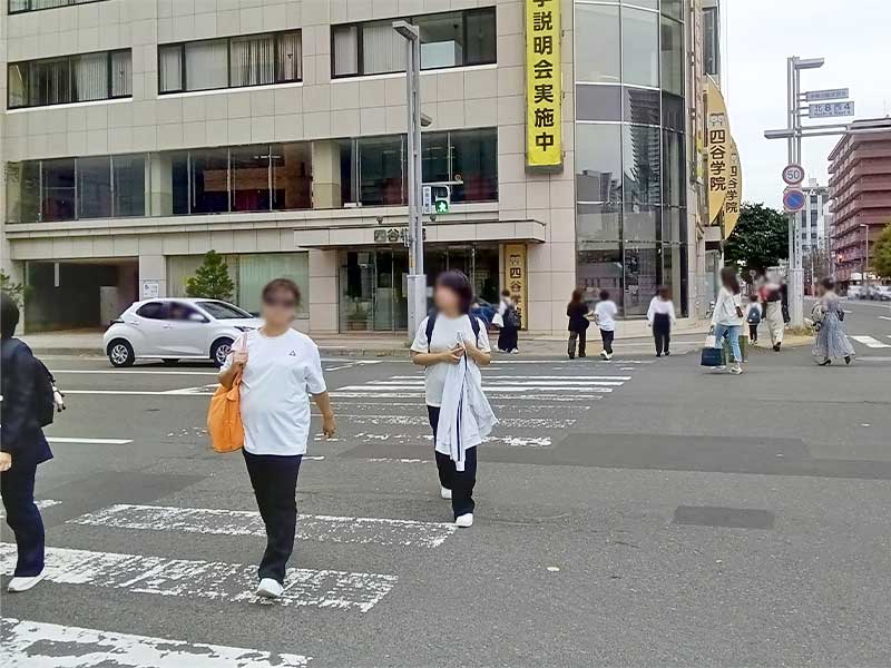 そちらの横断歩道を、四谷学院札幌校へ向けてまっすぐ渡ってください。