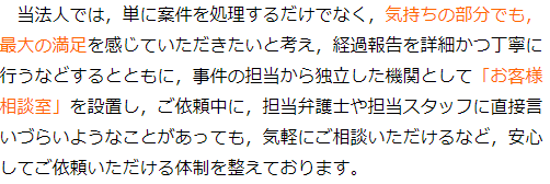 また、当法人では、弁護士費用の分割払いにも対応できる場合がありますので、費用のお支払いにご不安がある方もまずはご相談ください。