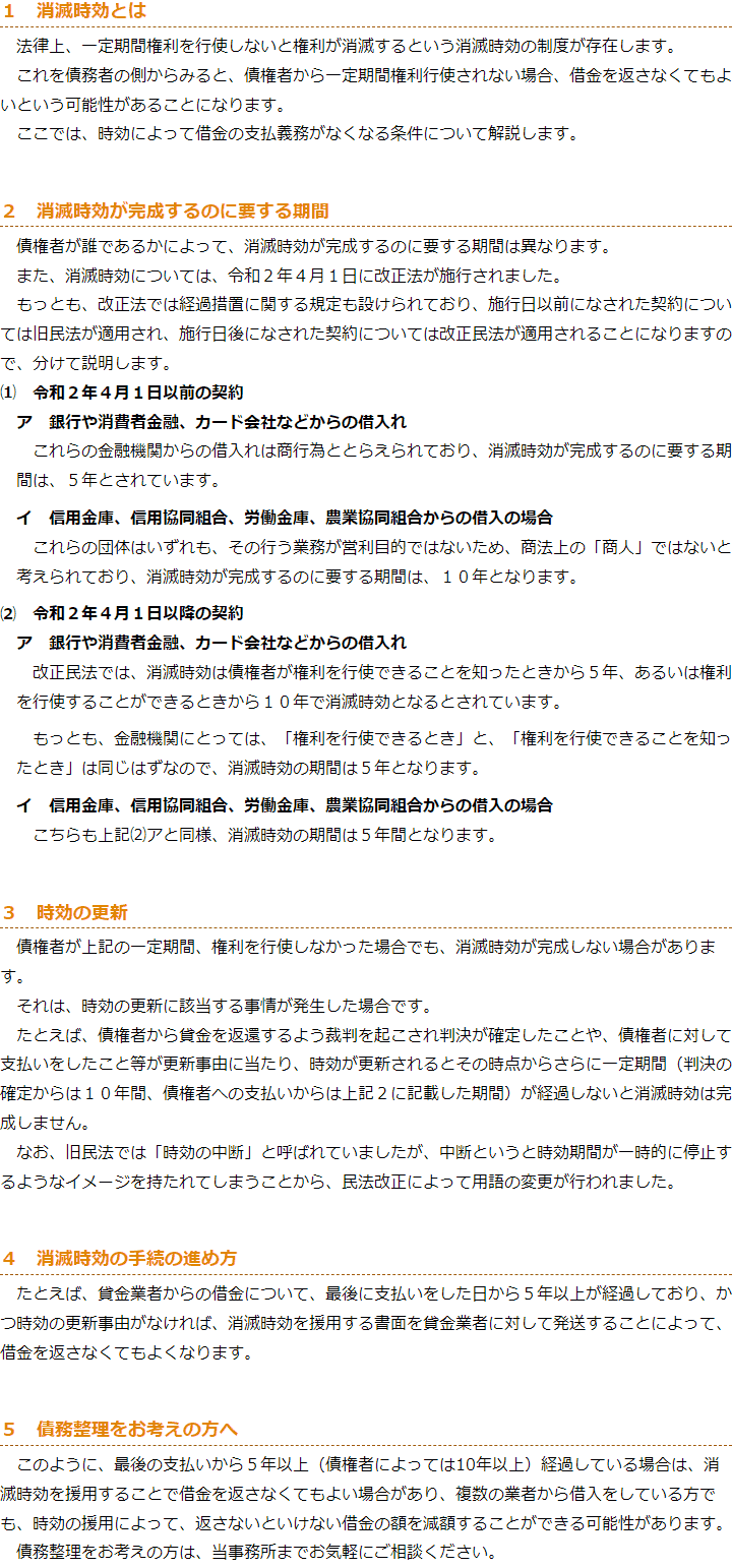 時効の援用のお役立ち情報