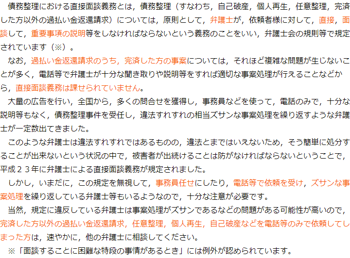 債務整理における直接面談義務